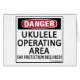 Perigo, Área Operacional Ukulele! Proteção auricular Necessária! Este é um aviso justo para qualquer pessoa em torno de instrumentos musicais. Veja todas as nossas designs musicais em copos, canecas, camisetas, camisas, chapéus e outros presentes e roupas.