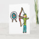 O design de arquivamento mostra o arqueiro apontando seta para o alvo da concorrência. Usa o estilo tradicional de arco-íris com design de aderência vermelha e veste a correia protetora do braço de couro e o trepador com setas. Um gráfico legal para arqueiros e fãs de arqueiros.