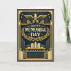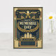 This elegant Memorial Day design is inspired by grand Art Deco memorial architecture and civic posters of the 1930s–1940s. A stylized eagle with outstretched wings presides over the composition, illuminated by radiant sunburst lines that suggest vigilance, sacrifice, and eternal remembrance. The bold message “Happy Memorial Day” is encircled by a laurel wreath, symbolizing honor and service. Below, a simplified monumental skyline rises like a ceremonial memorial, framed by stars, chevrons, and strong vertical lines that emphasize strength and permanence. Rendered in deep navy, antique gold, and muted jewel tones, the design conveys solemnity, dignity, and timeless respect for those who served.