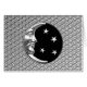 Cartão de nota em uma lua de arte deco e estrelas design em prata escovada com e esmalte em um fundo metálico falso prateado