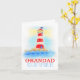 Cartão branco e vermelho de farol branco. Lê o vovô que você acende nossa vida. Dentro de Mensagem: Parabéns ou você pode personalizar com sua própria mensagem dentro e fora. Pintura única em aquarela e projetada por Sarah Trett.