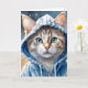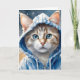 Cartão Arte em Aquarela Gato Listrado Capuz Azul Mancha