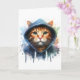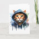 Cartão Arte em Aquarela Gato Malhado de Capuz Azul Mancha