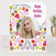 Cartão de aniversário fotográfico com flores coloridas mexicanas folk art em rosa, vermelho, amarelo e azul. Carregue sua foto neste dentro vibrante e giramente decorado com design e saia com arranjos florais. A frente lê Feliz Aniversário [seu nome] na tipografia ocidental e você também pode adicionar qualquer idade (ou deixar vazio se não for necessário). Dentro, a mensagem pode ser deixada como está, editada ou excluída. Uma escolha encantadora para uma quinceanera, doce dezesseis, amiga feminina ou parente.
