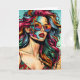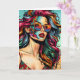 Vazio para dizer oi, ou para qualquer ocasião. Arte aérea exclusiva representando uma bela mulher moderna com cabelo colorido e óculos de sol coloridos em um biquíni na praia com reflexo neles. estilo quadrinho de pop de arte, arte fraturada.
