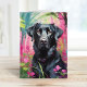 Um retrato surpreendente de arte moderna de um laboratório negro colocado contra um fundo abstrato rosa e verde do jardim floral. A silhueta escura do cão contrasta lindamente com as cores vibrantes e giratórias do jardim, misturando a natureza e o animal num estilo expressivo e contemporâneo. As pinceladas de abstrato criam uma sensação de movimento e energia, fazer esta peça única, brincalhão e visualmente cativante.