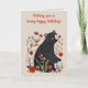 Este belo cartão apresenta uma ilustração de um urso negro da arte popular com uma mensagem editável acima dele. No interior há uma mensagem editável. Você pode usar isto como um cartão de aniversário ou como um cartão para qualquer ocasião. Você pode alterar a mensagem ou excluí-la para criar um cartão em branco. Você também pode alterar as cores do fundo no interior e no verso. Crédito artístico: Lynda McDaniel-Smith, 2024.
