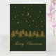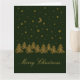 Cartão Árvore de Natal de ouro faísca, lua, estrelas em v
