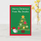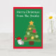 Adorável Cartão de Natal Personalizado com Árvore de Natal e Gato Adorável Usando Chapéu de Papai Noel. Saudação de Feliz Natal na Capa.