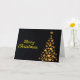 Cartão Árvore Dourada Elegante Feliz Natal em Preto