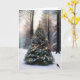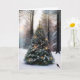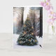Este cartão de Natal apresenta uma árvore de Natal brilhante na floresta.