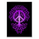Características deste design roxas elaboradas da árvore o símbolo para a paz no meio dos ramos tribais de fluxo. As grandes raizes espalharam fora da parte inferior deste teste padrão simétrico com o tronco que funciona acima o meio. A árvore senta-se em um fundo preto puro que crie um contraste impressionante. Os ramos e as raizes são compo dos redemoinhos e das linhas delicados que vêm junto criar um design de cartão à moda.