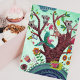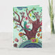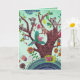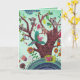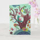 Um cartão de aniversário pintado manualmente com uma árvore tropical com animais, coala ursos e aves