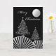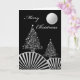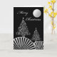 Cartão Árvores de Natal e Lua, Design de Prata Moderna