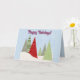 Este cartão de Natal não religioso apresenta uma ilustração de árvores no inverno com as palavras "feliz Natal". Este cumprimento pode ser alterado para um cartão de Natal religioso mudando para uma mensagem como "Bênçãos de Natal", etc. Há uma mensagem personalizada no interior. As palavras na frente e no interior podem ser alteradas para o que você quiser. A cor do fundo no interior e no verso também pode ser alterada.