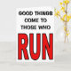 Cartão As coisas boas vêm para aqueles que correm!
