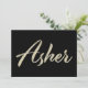 Eine personalisierte schöne und edle Karte / Grußkarte / Geschenkkarte / Geburtstagskarte im Handwriting liquid white gold Design für Asher.