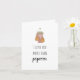 Este cartão é impresso com um design delicioso com uma ilustração em ASL do sinal de PIPOCA. A mensagem "Eu amo você mais do que pipoca" está impressa abaixo. O interior é deixado em branco intencionalmente para permitir uma mensagem personalizada.