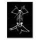O demónio de esqueleto completo da batalha no médio-salto com uma espada e a batalha axe. B/W, desenho da tinta, em t-shirt, camisolas, cartões, impressões, presentes.