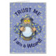 Um velho feiticeiro com capa azul olhando para a bola mágica de cristal.