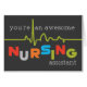 Celebrado em maio, o Dia dos Assistentes de Enfermagem é um momento para informá-los sobre o quão incrível eles são e o quanto eles fazem. As letras são misturadas com um gráfico de batimento cardíaco.