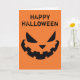 Este cartão de Dia das Bruxas cor de laranja assustador apresenta um legal sorriso Jack O Lantern e seu próprio texto personalizado. Cartas personalizadas bonitas e assustadoras.