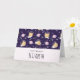 Cartão de aniversário com um adorável padrão com astronautas de gatinhos flutuando no espaço. Divertido e caprichoso.