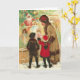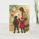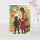 Vintage illustration of a mother with children watching a toy store window, filled with dolls and toys for Christmas.