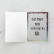 Divórcio é duro. A dor, o dinheiro. A traição, o dinheiro. A autoestima diminuída, o dinheiro. Por que não pegar um pouco de sua ira na que mais merece (em vez do próximo companheiro em potencial). Esta carta de saudação engraçada e francamente mesquinha ajuda-o a tirar a sua raiva, sacudir aquele porco/tramp/idiota, e seguir em frente com a sua vida. Não se divorciar ou separar? Dê este cartão engraçado como presente para uma pobre alma que está se divorciando ou se separando de um parceiro. Um pouco de leveza pode ser exatamente o que o médico pediu aqui.
