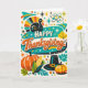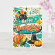 Cartão Atomic Mid Century Thanksgiving Turkey Pumpkin