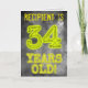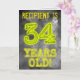 A frente desta misteriosa design de cartões de aniversário personalizados, com aparência, mostra a mensagem "34 ANOS DE IDADE!" com personagens e dígitos com um olhar assustador e brilhante inspirado em uma cinza sinistra, num padrão de fundo inspirado em neblina. A frente também apresenta um nome de destinatário editável. O dentro apresenta uma mensagem de saudação de aniversário personalizada. Um cartão de saudação de aniversário personalizável como este pode ser uma maneira especial de enviar uma mensagem de aniversário a alguém que comemora seu 34º aniversário. [~Z0000365]