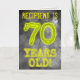 A frente desta misteriosa design de cartões de aniversário personalizável, com aparência, mostra a mensagem "70 ANOS DE IDADE!" com personagens e dígitos com um olhar assustador e brilhante inspirado na aura, em um padrão de fundo inspirou-se névoa de cinzas. A frente também apresenta um nome de destinatário editável. O dentro apresenta uma mensagem de saudação de aniversário personalizada. Um cartão de saudação de aniversário personalizável como este pode ser usado para enviar uma mensagem de saudação de aniversário a alguém que comemora seu aniversário de 70. [~Z0000365]