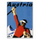Poster das viagens vintage para Áustria em um estilo ilustrativo do art deco que promove esportes do esqui e de inverno.
