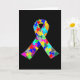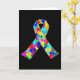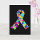 Beautiful autism ribbon filled with puzzle pieces of every color on a black background to support your loved one who falls on the autism spectrum. I love my autistic brother.