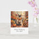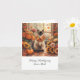 Cartão Autumn Cat com Flores Queda Estação de Ação de Gra