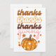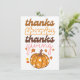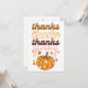 Um cartão de saudação colorido com elegante texto "obrigados, obrigados de Ação de Graças", e uma abóbora de outono. O cartão contém uma mensagem de boas-vindas maravilhosa no verso, que pode ser personalizada.