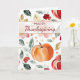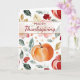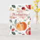 Uma abóbora de aquarela macia e florais de outono estabeleceram uma alegre cena de outono com a saudação "Feliz Ação de Graças". Esta versão geral é perfeita para enviar desejos sazonais calorosos à família, amigos, vizinhos e colegas de trabalho para celebrar o feriado.