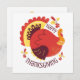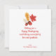 Um cartão de saudação colorido com um texto elegante da tipografia "Feliz Dia de Ação de Graças", e um peru fofo com um galho de amora. O cartão contém uma mensagem de boas-vindas maravilhosa no verso, que pode ser personalizada.