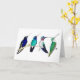 Este cartão bonito para amantes de pássaros apresenta várias espécies pintadas manualmente de beija-flor, por exemplo, um beija-flor de bico amplo, uma fêmea com garganta rubi, uma garganta de estômago e um beija-flor de coroneta. Todas as imagens de pássaros são tiradas de ilustrações de aquarelas por C. Dobbins.