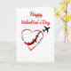A frente do cartão tem um grande coração e avião voando com cordas de coração com o texto "Eu amo meu piloto" em contorno de coração. Dentro é uma mensagem sincera que pode ser personalizada. Perfeito para seu piloto ou aviador favorito. Copyright Soar Em Designs De Estilo.