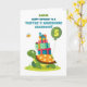 Torne inesquecível o aniversário de 5 do seu neto com este cartão de tartaruga personalizado com o seu nome na frente. Uma tartaruga sorridente com presentes e amiguinhos traz mais alegria e amor ao seu dia especial.