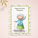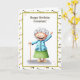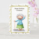 Quão fofo e divertido é este cartão com uma velha senhora feliz acenando! Ela tem sua bengala e está vestindo uma saia verde e camisa azul. Ótimo cartão de aniversário para sua avó este ano. Personalize o texto com sua própria mensagem e clique em personalizar ainda mais, se necessário. Ilustrado e projetado por Patricia Alvarez.