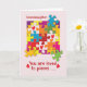 Sua querida e querida neta ficará certamente emocionada quando ela receber este cartão de cumprimentos de aniversário de você. Na frente deste cartão estão peças quebra-cabeça coloridas que correspondem à sua personalidade colorida.