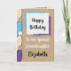 Personalize esta Feliz Cartão de Aniversário para uma neta especial Projetada em roxo, azul e preto. Adicione um nome e sua mensagem. Feliz Aniversário Com Amor *Fundo de Efeito Rústico Gráfico Kraft. *Cartão Kraft real não usado