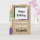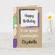 Personalize esta feliz carta de aniversário para uma neta especial projetada em verde, roxo e preto. Adicione um nome e sua mensagem. Feliz Aniversário Com Amor *Fundo de Efeito Rústico Gráfico Kraft. *Cartão Kraft real não usado