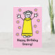 Cartão Avó Cor-de-Rosa Simpática Acenando Aniversário de