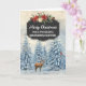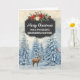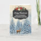 Feliz Natal para a placa neta com padrão rústico de prato de chalkboard e cena de floresta com cor de neve com veados e pássaros.