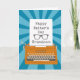 Uma máquina de escrever laranja, com um fundo azul de explosão solar. Um pedaço de papel da máquina de escrever que tem as palavras Happy Dia de os pais Grandson em letra de máquina de escrever e óculos de silhueta. Um cartão de dia de os pais adorável para seu {spec}neto tacular! © Ness Nordberg