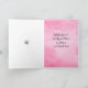 Uma carta de boas-vindas do Feliz Dia das Bruxas, na "pinkoween", para uma neta ou outro amigo/membro da família, decorada com um fantasma caprichoso, vestindo um arco rosa bonito com flores à volta da base da sua folha desenhada à mão com tinta num fundo de lavagem a água cor-de-rosa quente. No dentro está outra pequena flor e uma lavagem de aquarela cor rosa com texto de cinza que você pode personalizar com sua própria mensagem.