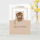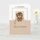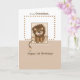 Um cartão marrom com um bebê leão giro na frente deste cartão. Perfeito para enviar os seus desejos para o primeiro aniversário do seu neto!